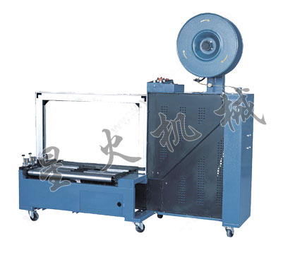 打包物體基本處理機(jī)器中間,首先右頂體上升,壓緊帶的前端,把帶子收緊捆在物體上,隨后左頂體上升,壓緊下層帶子的適當(dāng)位置,加熱片伸進(jìn)兩帶子中間,中頂?shù)渡仙,切斷帶子,最后把下一下捆扎帶子送到位,完成一個工作循環(huán)。